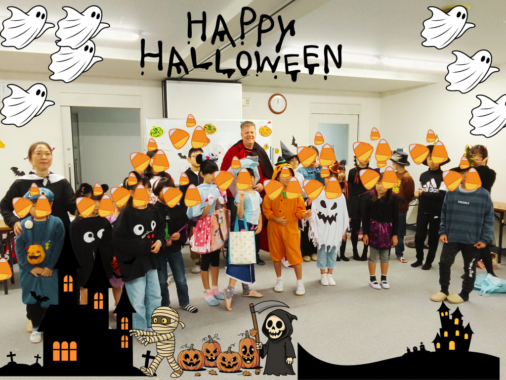 先日の日曜日、オーストラリア人の友人に来てもらい、楽しくハロウィンパーティを開きました。みんなで英語でたくさん質問できました。比較を勉強している4,5年生は"What is the second highest mountain in Japan?"などと、ちょっと答えるのが難しい質問もできていました。低学年、幼稚園の生徒さんは名前や年齢をきちんと答えられました。一年生のR君は"What grade are you in?"と聞かれて"Frist grade."ときれいな発音で答えられました。